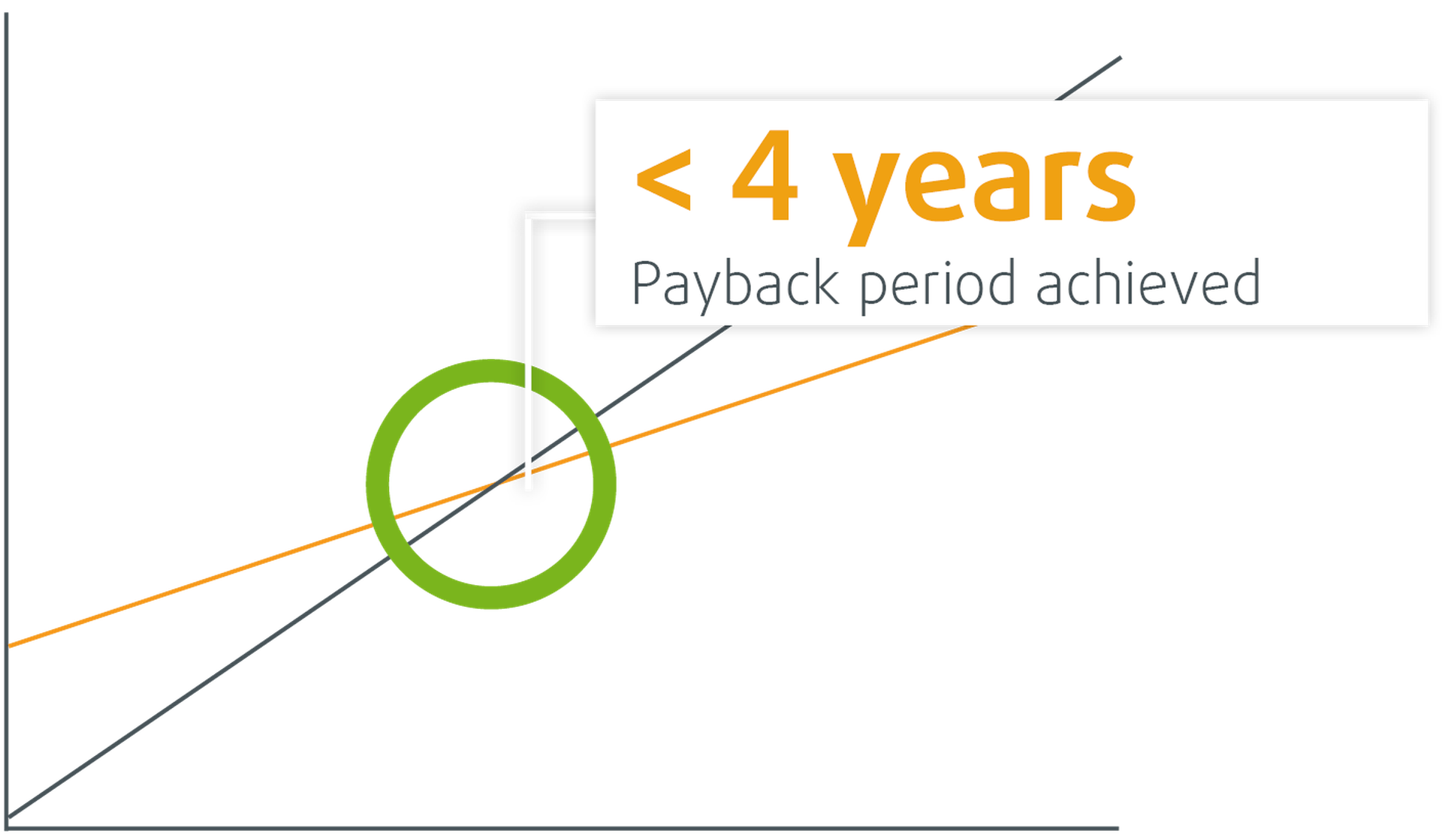 La recuperación de calor con AquaCond se amortiza, por término medio, en sólo 4 años. A partir de entonces, el sistema ahorra dinero cada día y reduce permanentemente los costes de explotación.